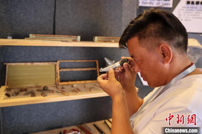 9月24日,記者跟隨2024年青海湖生態(tài)保護(hù)能力提升培訓(xùn)班來到青海省海南藏族自治州貴德縣青海青藏蜜蜂良種養(yǎng)殖場,展示柜里擺放的蜜蜂標(biāo)本。中新社記者 薛蒂 攝