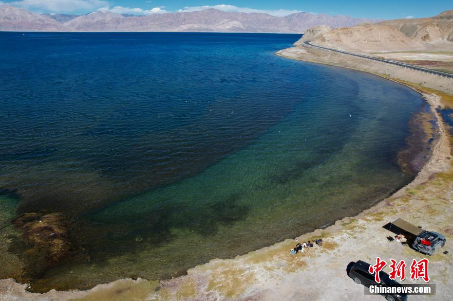 10月4日,游客在班公湖邊休閑露營(yíng)?!笆弧眹?guó)慶假期,不少游客來(lái)到西藏日土縣班公湖游玩。(無(wú)人機(jī)照片)