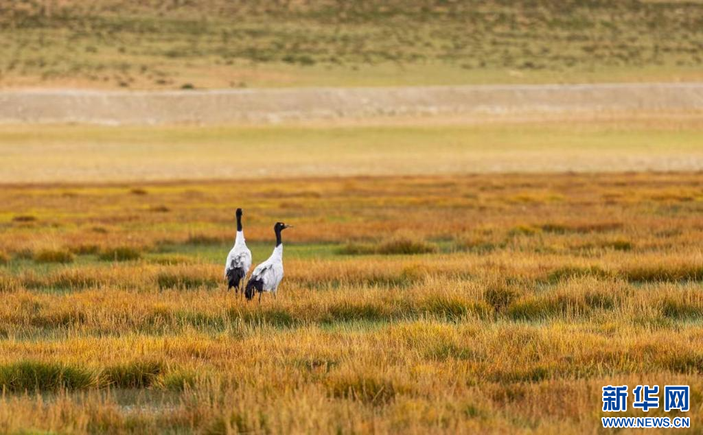 9月30日拍攝的西藏阿里地區(qū)普蘭縣境內的黑頸鶴。新華網(wǎng)發(fā) 劉曉東攝