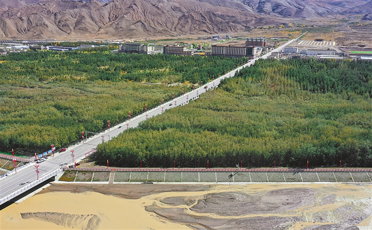 山南市隆子縣地處高寒干旱區(qū),平均海拔3800多米,冬季寒冷漫長,漫天風沙嚴重影響當?shù)厝罕娚a(chǎn)生活。從20世紀60年代開始,世代飽受風沙肆虐的隆子人民,開始栽種沙棘,接續(xù)治沙。一場撼人心魄的“生態(tài)革命”,在隆子河谷悄然拉開帷幕。經(jīng)過半個多世紀的辛勤栽植,隆子河谷筑起了一道40余公里、面積超50平方千米的“綠色長城”,2019年被世界紀錄認證機構WRCA認證為“世界最大人工種植連片沙棘”。俯瞰這片沙棘林,猶如一條“綠色哈達”,守護著這里的碧水藍天。