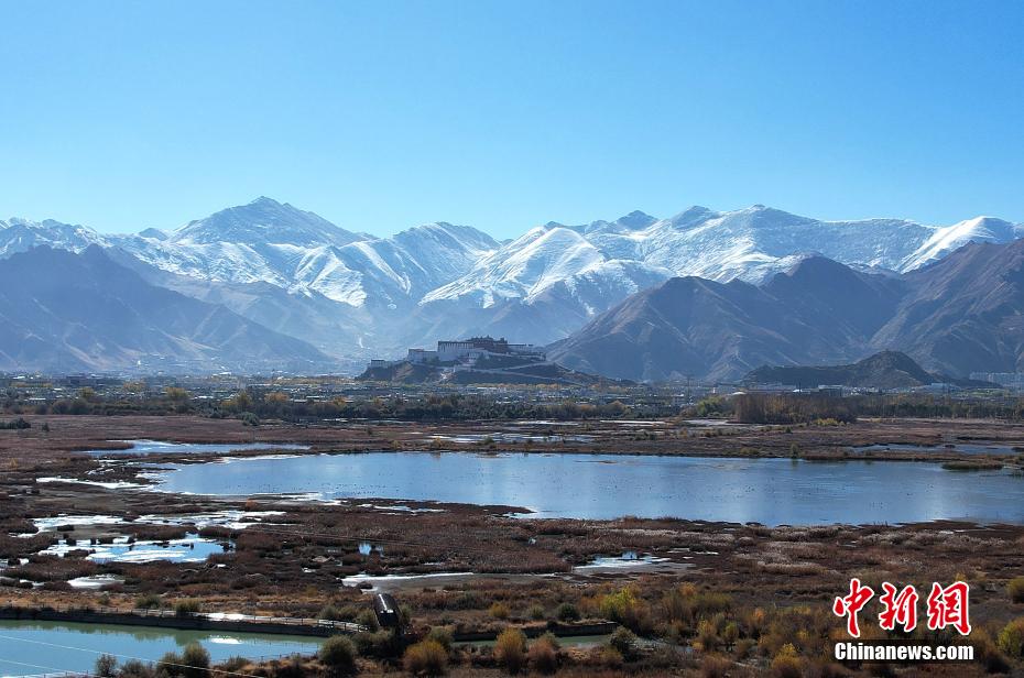 位于西藏拉薩的拉魯濕地國(guó)家級(jí)自然保護(hù)區(qū)是目前世界上海拔最高的城市內(nèi)陸天然濕地,保護(hù)區(qū)總面積12.2平方公里,被譽(yù)為“拉薩之肺”。初冬時(shí)節(jié),拉魯濕地與遠(yuǎn)處的布達(dá)拉宮、周圍的雪山構(gòu)成一幅壯美畫(huà)卷。圖為11月8日,拉魯濕地景色。(無(wú)人機(jī)照片)