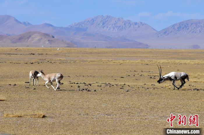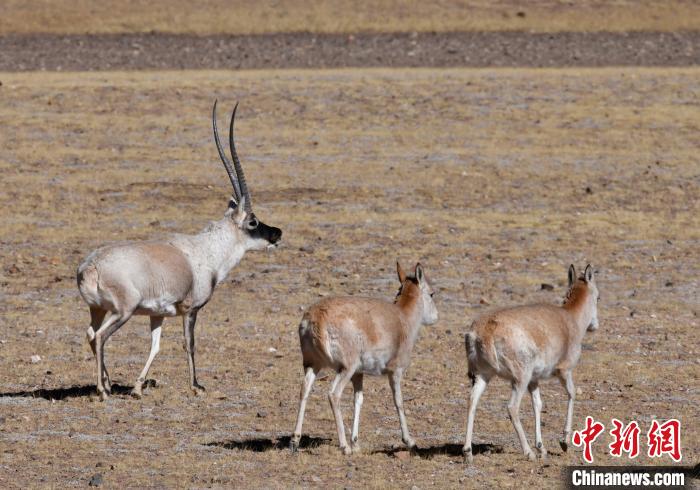 圖為12月8日,棲息在魯確塘草原的藏羚羊。中新社記者 李林 攝
