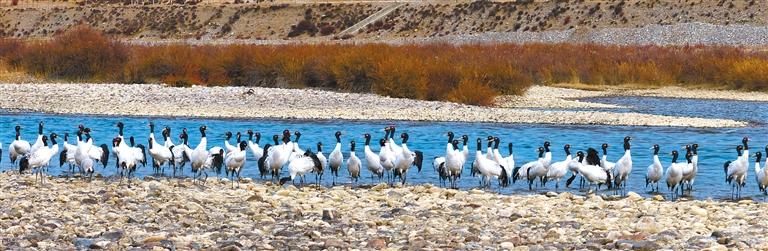 如今,一批又一批黑頸鶴從四川、青海等地啟程,歷經(jīng)近千公里的長途跋涉,紛紛抵達(dá)西藏各越冬地,開啟他們的越冬生活。
