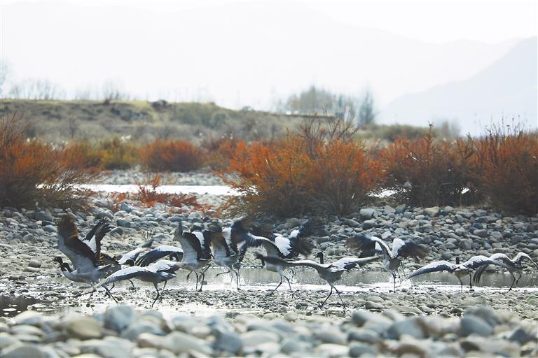圖片均為黑頸鶴在墨竹工卡境內(nèi)棲息的場(chǎng)景。