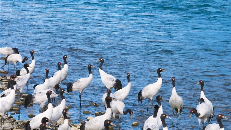黑頸鶴,作為國家一級(jí)保護(hù)動(dòng)物,藏語名稱為“沖沖”,享有“吉祥鳥”的美譽(yù)。這種珍稀鶴類主要棲息于海拔2500米至5000米的高原、草甸、沼澤地帶,是鶴類中唯一能在高原地區(qū)完成繁殖和越冬的鶴類。獨(dú)特的生態(tài)習(xí)性,使其被譽(yù)為“高原仙鶴”,成為鶴類中當(dāng)下唯一的高原居民。