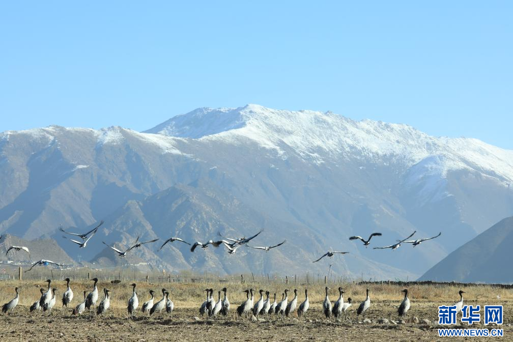 墨竹工卡縣,位于雅魯藏布江中游河谷,每年隨著冬季來臨,一群又一群的黑頸鶴來到拉薩市墨竹工卡縣越冬覓食,成為當?shù)匾坏烂利惖纳鷳B(tài)風景線。