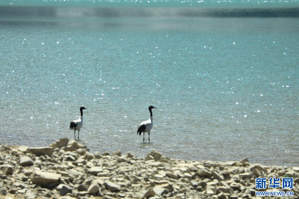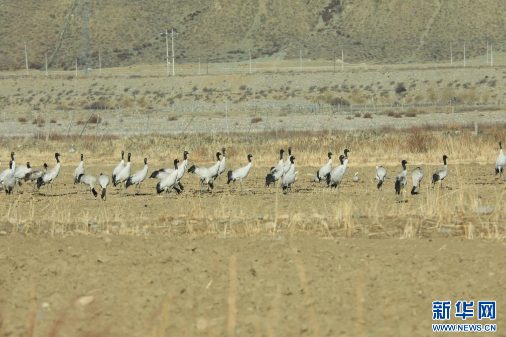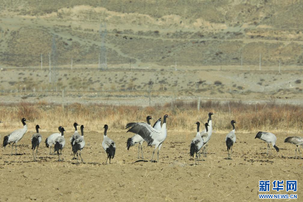 3月4月,在西藏墨竹工卡縣境內(nèi)拍攝的黑頸鶴。新華網(wǎng)發(fā) 洛克 攝
