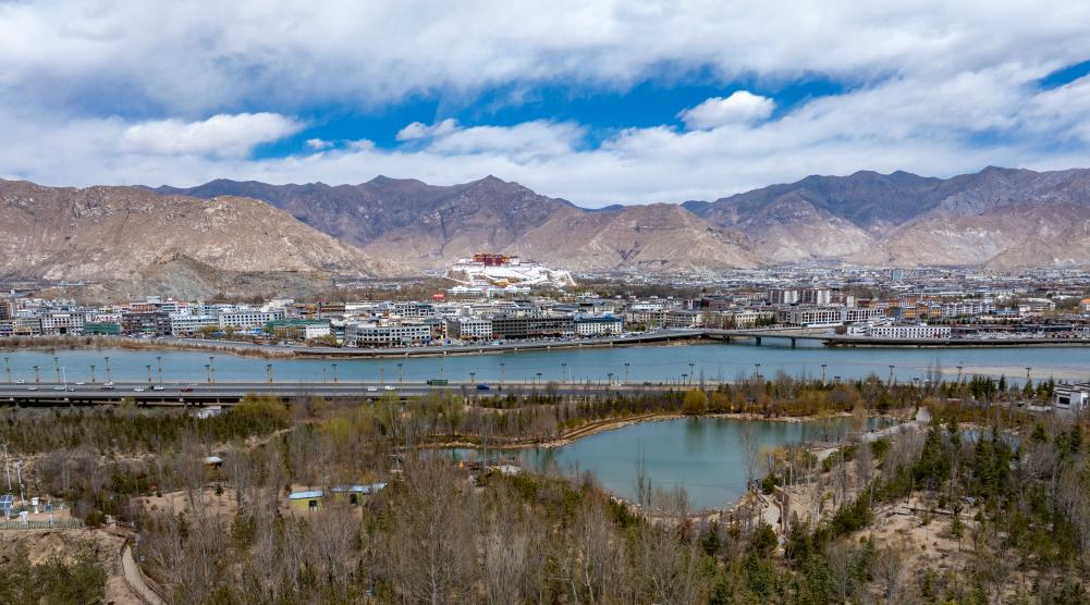 從拉薩南山公園拍攝的布達(dá)拉宮(3月20日攝,無(wú)人機(jī)照片)。新華社記者莊云凱 攝