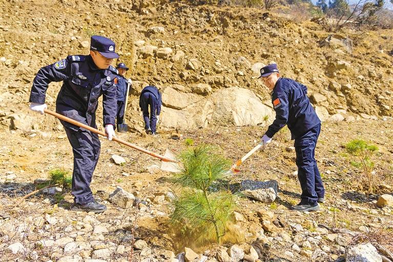 活動(dòng)現(xiàn)場(chǎng),民警與群眾組成協(xié)作小組,揮鍬鏟土、扶苗培土,嚴(yán)格按照技術(shù)標(biāo)準(zhǔn)栽種松、柏等樹苗。經(jīng)過數(shù)小時(shí)奮戰(zhàn),數(shù)百株樹苗迎風(fēng)挺立,為高原大地披上嶄新綠裝。