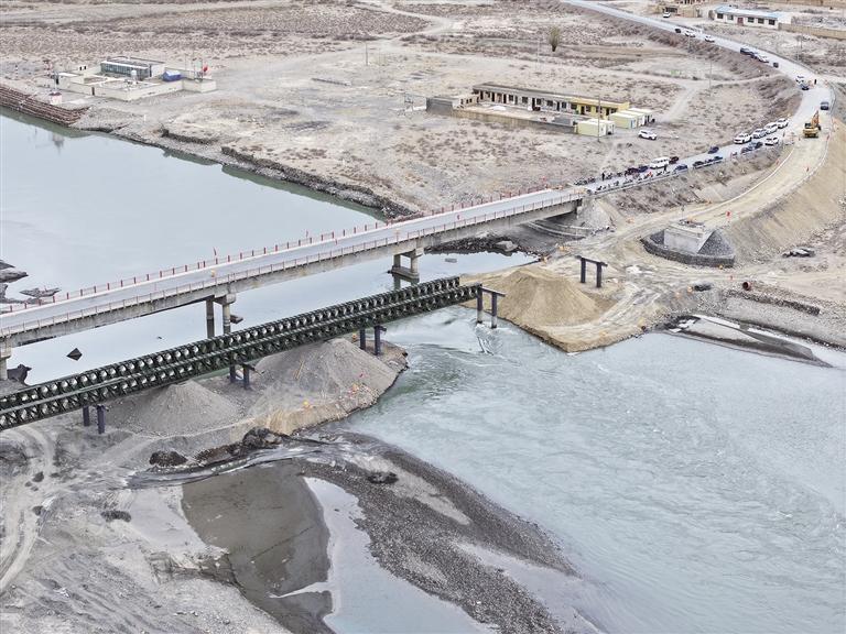 近日,記者從自治區(qū)交通運(yùn)輸廳了解到,受1月7日定日6.8級(jí)地震影響,國道349線上的拉孜雅魯藏布江大橋(簡(jiǎn)稱拉孜雅江大橋)損壞嚴(yán)重,封閉禁行,在該橋旁邊設(shè)置的臨時(shí)保通便道鋼架橋已完成全部工程量的90%,即將完工通車。