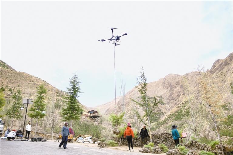 為了解決南北山綠化工程推進過程中存在的樹苗搬運耗時費力、效率低問題,西藏因地制宜、積極創(chuàng)新,推行無人機運輸苗木技術(shù),極大提升了綠化工作的效率。無人機的使用能夠快速將樹苗精準投放到指定區(qū)域,以往需要數(shù)天才能完成的樹苗運輸工作,現(xiàn)在僅需幾個小時就能完成,大大縮短了綠化作業(yè)的周期。