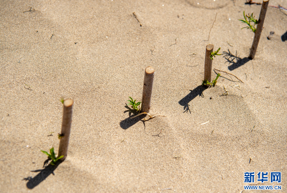 圖為拉薩南北山造林綠化(貢嘎段)西藏森拓雅公司造林片區(qū)拍攝的沙柳(4月24日攝)。新華網(wǎng) 旦增努布 攝