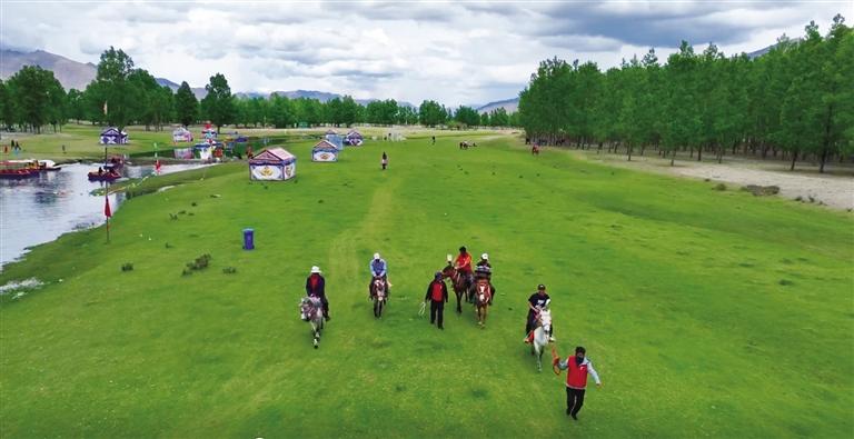微風(fēng)吹過(guò),神秘樹林中樹葉沙沙作響,與歡笑聲、歌聲交織,構(gòu)成了一幅充滿生機(jī)的藏地林卡風(fēng)情畫。在這里,你能體驗(yàn)到遠(yuǎn)離城市喧囂的寧?kù)o,感受來(lái)自森林的溫柔擁抱;也能騎上裝飾著彩綢的白馬,悠然漫步于斑駁樹影之間,聆聽馬蹄輕踏草地的細(xì)碎聲響。樹林、草坪、河流……讓人仿佛置身于童話般的藏地桃源。