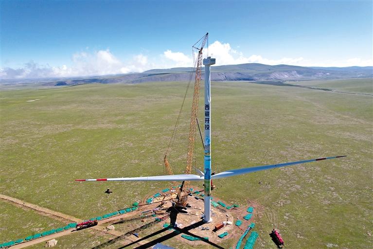 在海拔4700米的藏北高原,隨著13#風(fēng)機(jī)葉輪與機(jī)艙精準(zhǔn)對(duì)接,西藏開(kāi)投色尼區(qū)曲果嘎姆200MW風(fēng)電項(xiàng)目首臺(tái)風(fēng)電機(jī)組7月5日在那曲順利完成吊裝。
