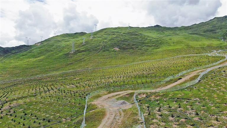 “歡迎來到南北山綠化工程現(xiàn)場!”指揮部工作人員頓珠迎面走來,熱情洋溢地說。他翻開隨身攜帶的工作日志,密密麻麻的記錄映入眼簾:“截至目前,我們已栽植161萬余株苗木,種植穴和網(wǎng)圍欄等基礎(chǔ)工程全部完工。”順著他的指引望去,銀灰色的網(wǎng)圍欄在晨光中閃爍,如鋼鐵長城般蜿蜒于群山。
