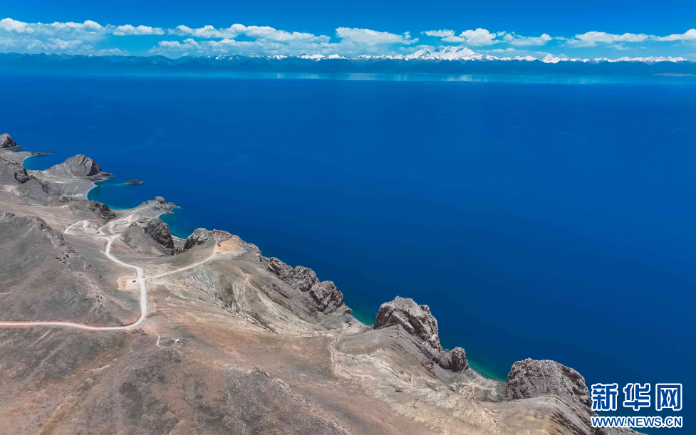 圖為夏日納木錯(7月7日攝,無人機(jī)照片)。新華網(wǎng)發(fā) 車宇軒 攝