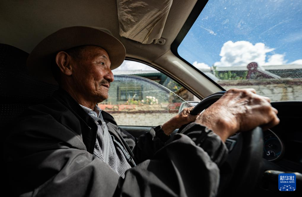 多布杰老人駕車前往林則生態(tài)文化旅游景區(qū)(7月23日攝)。新華社記者 丁增尼達 攝
