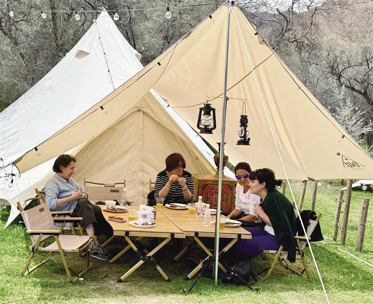李女士說:“林卡中有一條小河流穿過,大人孩子可以在這里打水仗、坐船,玩累了還可以在這里燒烤,這就是我喜歡這里的原因?!背水?shù)厝?,還有很多游客喜歡來這里體驗,喝一杯啤酒,跳一曲鍋莊舞,感受一下當?shù)卮緲愕拿耧L。