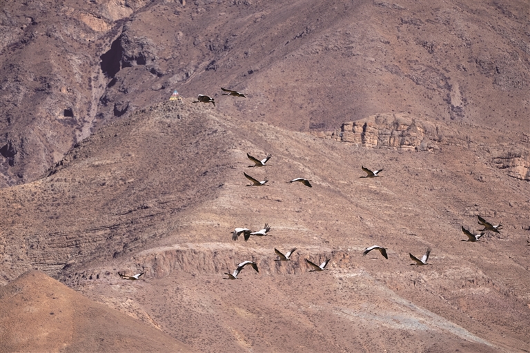 寒冬到來(lái),雅江中游河谷黑頸鶴國(guó)家級(jí)自然保護(hù)區(qū)林周澎波區(qū)域迎來(lái)大批越冬黑頸鶴。作為國(guó)家一級(jí)保護(hù)動(dòng)物、高原特有珍稀物種——黑頸鶴,2025年6月被正式評(píng)為拉薩市鳥(niǎo),成為城市生態(tài)文化名片。它們?cè)诖笋v足棲息、覓食嬉戲,勾勒出一幅人與生靈和諧共生的美好圖景。林周縣以制度護(hù)航、全民參與、科學(xué)管護(hù)等方式筑牢保護(hù)屏障,讓“高原仙子”安穩(wěn)越冬,用種群遞增印證高原生態(tài)保護(hù)實(shí)效。