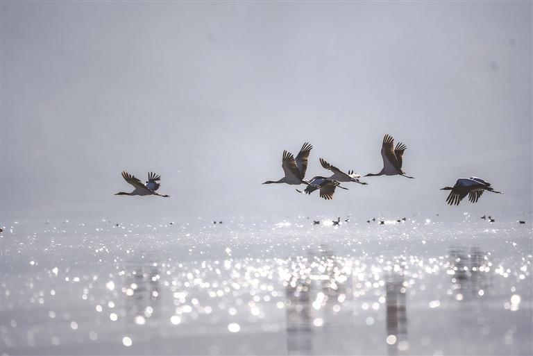 近日,被譽(yù)為 “高原仙子”的國家一級(jí)保護(hù)動(dòng)物黑頸鶴如期飛抵拉薩市林周縣卡孜水庫越冬,與斑頭雁、赤麻鴨等水鳥共同構(gòu)成高原濕地生態(tài)畫卷。
