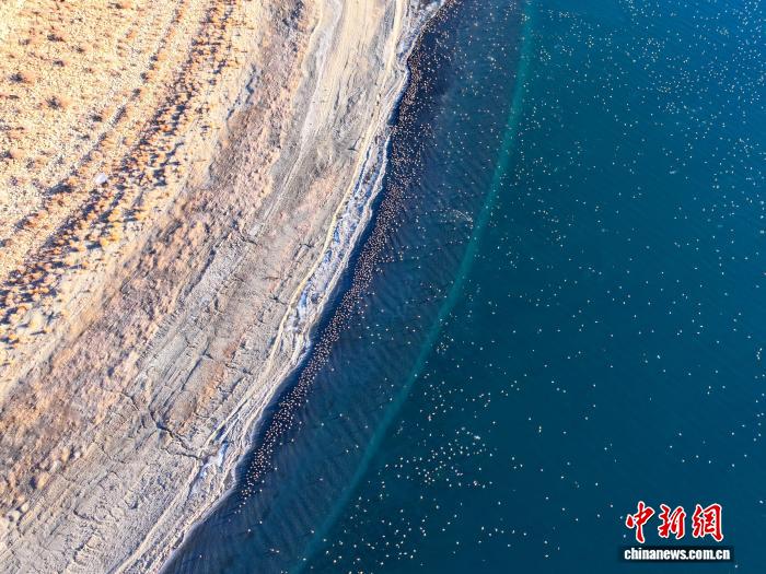 1月18日,成群候鳥在沉錯(cuò)水域越冬。(無人機(jī)照片)中新社記者 貢嘎來松 攝