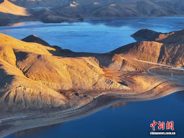 1月18日,西藏羊卓雍錯(cuò)流域沉錯(cuò)風(fēng)光。(無人機(jī)照片)中新社記者 貢嘎來松 攝