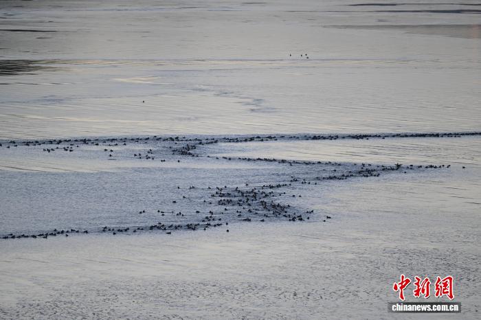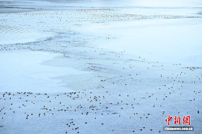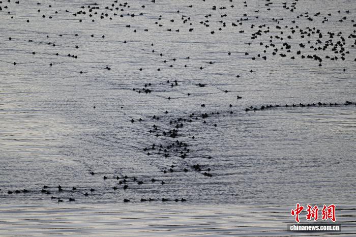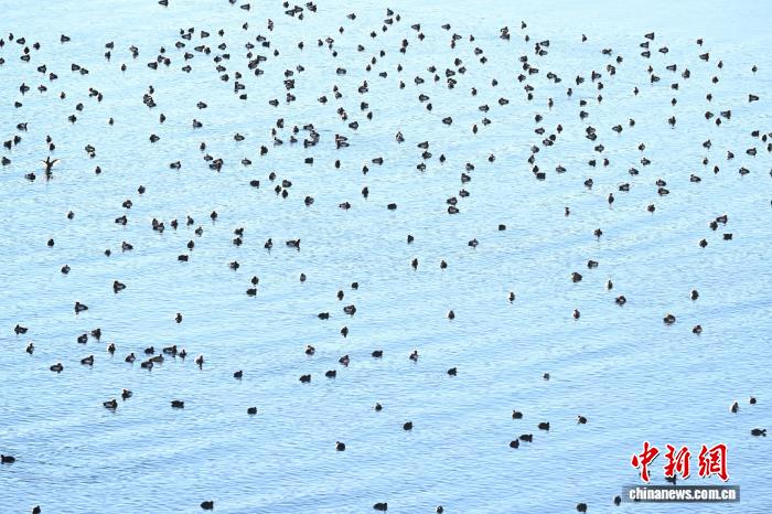 1月18日,成群的赤嘴潛鴨在沉錯(cuò)水域越冬。中新社記者 貢嘎來松 攝