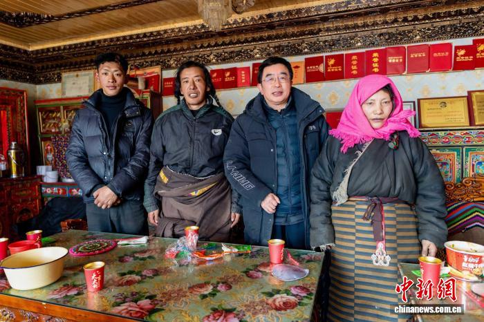 2025年12月21日,連玉明(右二)走進(jìn)海拔5300米的長江源頭牧民家中調(diào)研,并與牧民一家合影。受訪者供圖