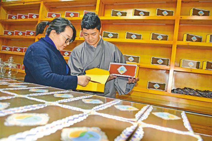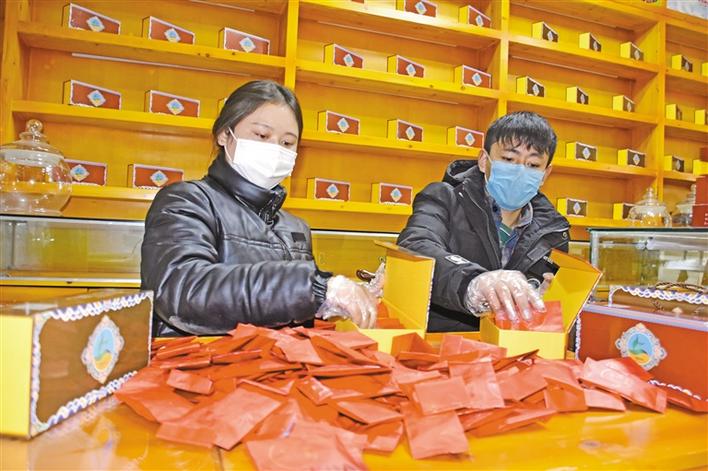 穹布倉大學(xué)生創(chuàng)業(yè)者正在包裝藏藥蟲草茶。