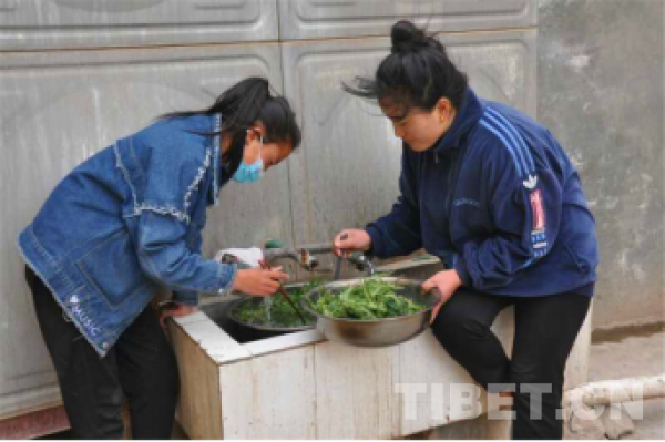 圖為在四川巴塘讀七年級的扎西央宗(左)在家洗野菜 攝影:唐大山