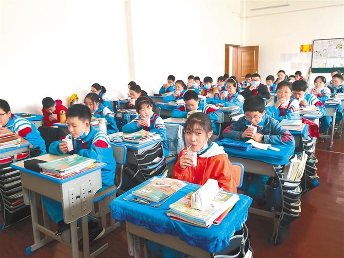 圖為拉薩市一小六年級六班的孩子們在喝學生奶。通訊員 王愛軍 攝