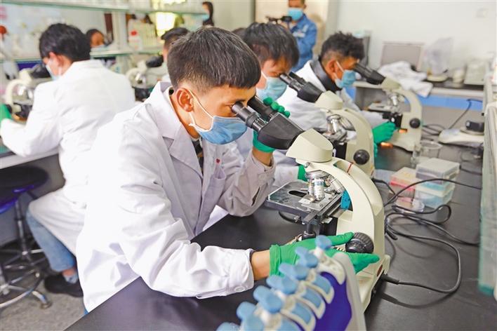 圖為西藏職業(yè)技術(shù)學(xué)院2020屆赴區(qū)外企業(yè)就業(yè)的畢業(yè)生在實(shí)驗(yàn)室進(jìn)行崗前培訓(xùn)。記者 潘璐 王莉 攝