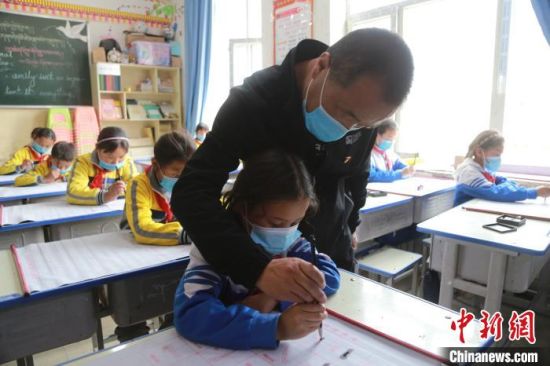 圖為鄉(xiāng)村學(xué)校少年宮的孩子們在老師的指導(dǎo)下練習(xí)書法?!〔抛尡?攝