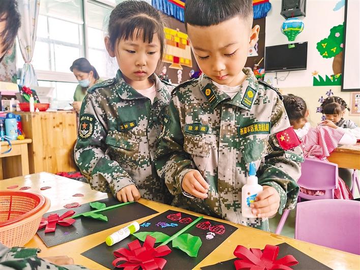 圖為教師節(jié)來臨之際,西藏軍區(qū)機關(guān)幼兒園的學(xué)生為老師制作節(jié)日祝福卡片。記者 王莉 攝