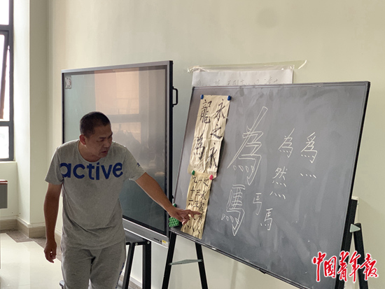 蔡偉給學(xué)生上書法課。王景爍攝
