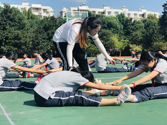 多年來,因?yàn)閷?duì)體育老師的重視,南京十三中紅山分校也成為不少學(xué)校學(xué)習(xí)的對(duì)象,但是有些工作是這些學(xué)校怎么也學(xué)不會(huì)的。比如,學(xué)校的大課間活動(dòng),強(qiáng)調(diào)的是全體學(xué)生的快、靜、齊。這體現(xiàn)著學(xué)生的紀(jì)律性、規(guī)范性和有序性。如果不是體育老師全面介入學(xué)校的教學(xué)管理工作,把體育作為教育的重要手段融入到學(xué)校的教學(xué)工作中去,全體學(xué)生也就很難自覺地養(yǎng)成規(guī)范意識(shí)、規(guī)則意識(shí)。這可能也是其他學(xué)校想學(xué)習(xí)南京十三中紅山分校的特色大課間,只能學(xué)到皮毛而學(xué)不到精髓的原因。