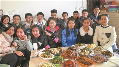 2017年春節(jié),考上大學(xué)的部分受助學(xué)生返鄉(xiāng),和張彥杰、李友生夫婦(第二排左一、二)一起過年。