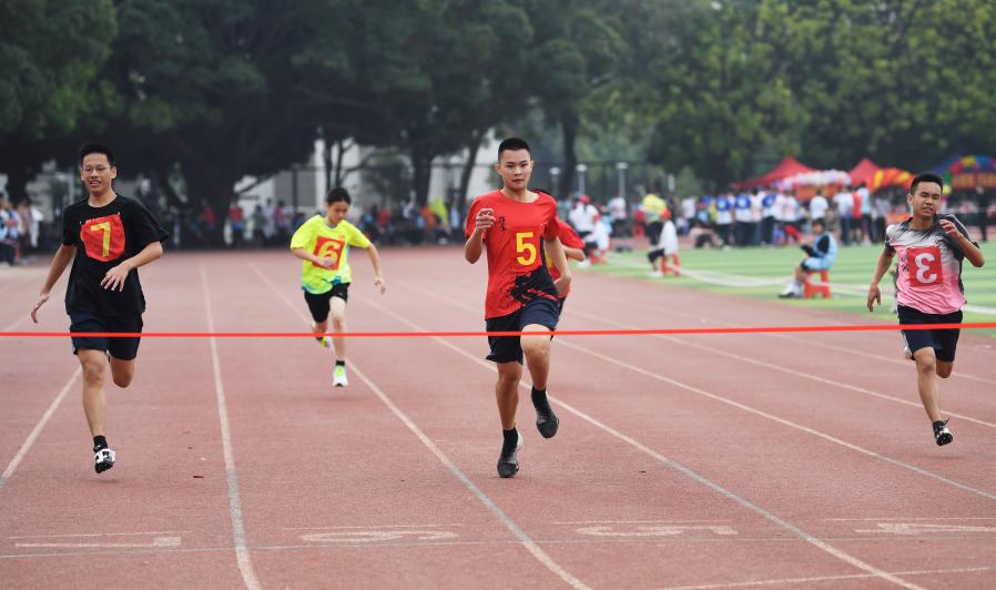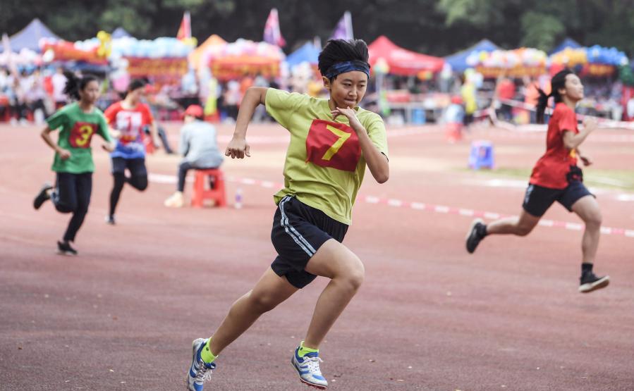 11月26日, 廣西大學(xué)附屬中學(xué)初中年級學(xué)生在200米跑比賽中。新華社記者張愛林?jǐn)z