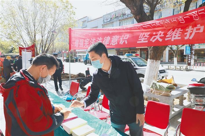 為深入推進(jìn)全民法治宣傳教育,提升各族干部群眾的法治素養(yǎng),西藏自治區(qū)司法廳、西藏自治區(qū)普法辦工作人員走上街頭開展法治宣傳,在西藏全區(qū)營造出尊崇法治、信仰法治的濃厚氛圍。