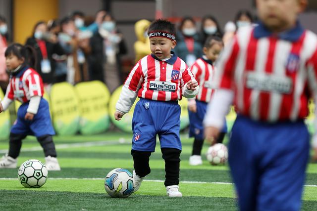 12月7日,淮北市第二實(shí)驗(yàn)幼兒園的小朋友在足球課上學(xué)習(xí)踢足球。