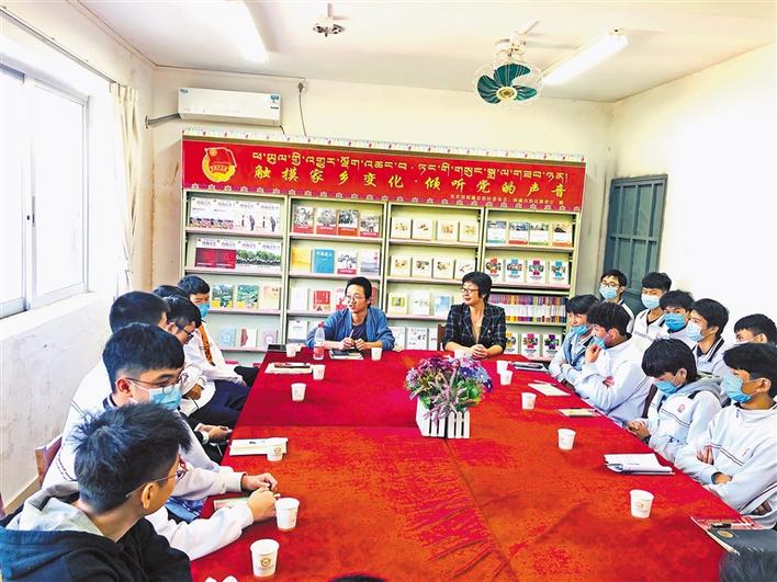 為認(rèn)真學(xué)習(xí)宣傳習(xí)近平新時(shí)代中國(guó)特色社會(huì)主義思想,深入貫徹落實(shí)中央第七次西藏工作座談會(huì)精神,近日,由共青團(tuán)西藏自治區(qū)委員會(huì)、西藏自治區(qū)教育廳主辦,西藏青年報(bào)社、內(nèi)地西藏班(校)管理中心承辦的第八屆“觸摸家鄉(xiāng)變化·傾聽(tīng)黨的聲音”暨2020年“感黨恩、愛(ài)核心、聽(tīng)黨話、跟黨走”內(nèi)地西藏班民族團(tuán)結(jié)教育活動(dòng)走進(jìn)漳州三中、廣東貿(mào)易職業(yè)技術(shù)學(xué)校和珠海四中等6所學(xué)校。宣講組一行通過(guò)圖片和文字資料的方式,向內(nèi)地西藏班的學(xué)子們展示了西藏自治區(qū)在黨中央的關(guān)心、全國(guó)各省市的支援和全區(qū)各族人民的共同努力下,西藏社會(huì)面貌所發(fā)生的翻天覆地的變化,各項(xiàng)事業(yè)均取得了前所未有的偉大成就。宣講組還在6所學(xué)校專(zhuān)門(mén)設(shè)立了“觸摸家鄉(xiāng)變化·傾聽(tīng)黨的聲音”主題書(shū)刊欄。