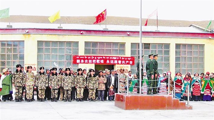 圖為3月28日,烏江村軍民聯(lián)合開展“翻身農(nóng)奴把歌唱 永遠(yuǎn)跟著共產(chǎn)黨”升國(guó)旗活動(dòng)。