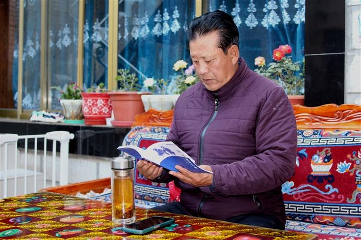 圖為白瑪次仁在看書。 次仁片多 王莉 攝