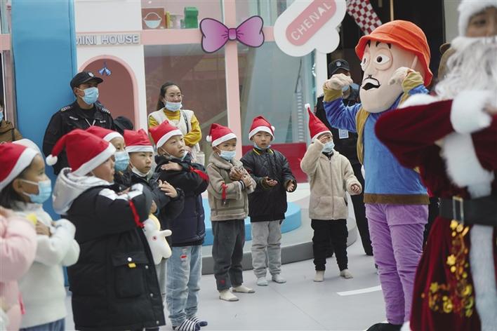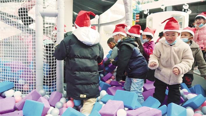 旋轉(zhuǎn)木馬、淘氣堡、滑梯……7歲的丹增達色玩得小臉紅撲撲,她告訴記者,這是她第一次來第三極歡樂世界,能和這么多小伙伴一起玩耍,真得很開心?!敖裉煊羞@么多叔叔阿姨們陪我們一起唱歌、跳舞,還送了我們小禮物,我很喜歡?!钡ぴ鲞_色笑著說。