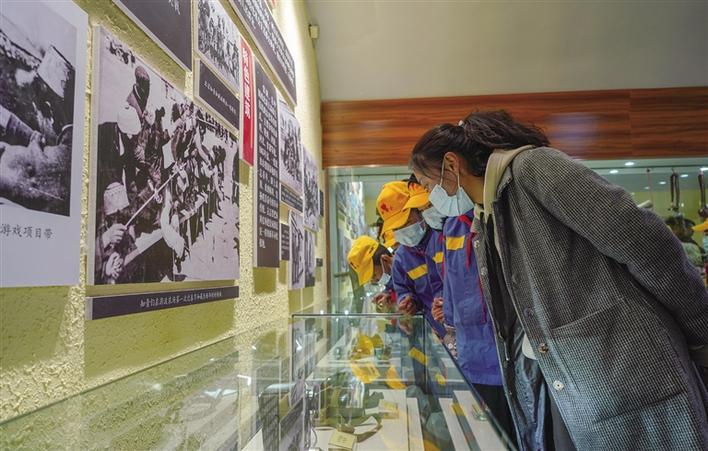 揭牌儀式結(jié)束后,現(xiàn)場(chǎng)人員有序參觀林周縣黨員黨性愛國(guó)主義教育基地《青春如火 高原如歌》大型展覽。