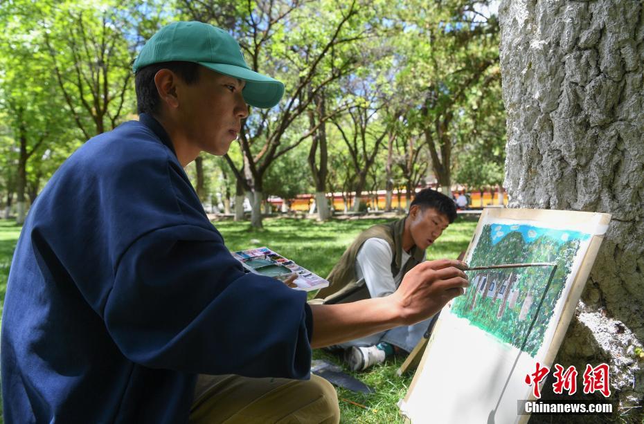 圖為西藏大學(xué)建筑系學(xué)生正在手繪羅布林卡內(nèi)的建筑。 中新社記者 貢嘎來松 攝