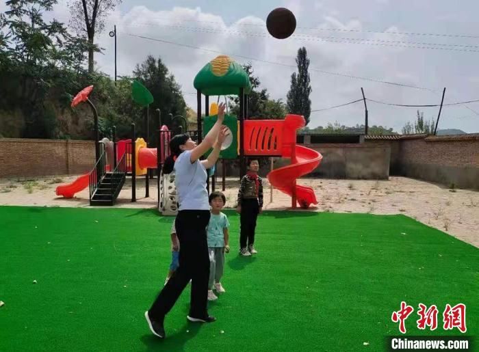 近年來,楊新莊小學(xué)教學(xué)條件在不斷改善。圖為王寶花帶領(lǐng)學(xué)生們?cè)诓賵?chǎng)上玩耍。(資料圖) 解天文 攝