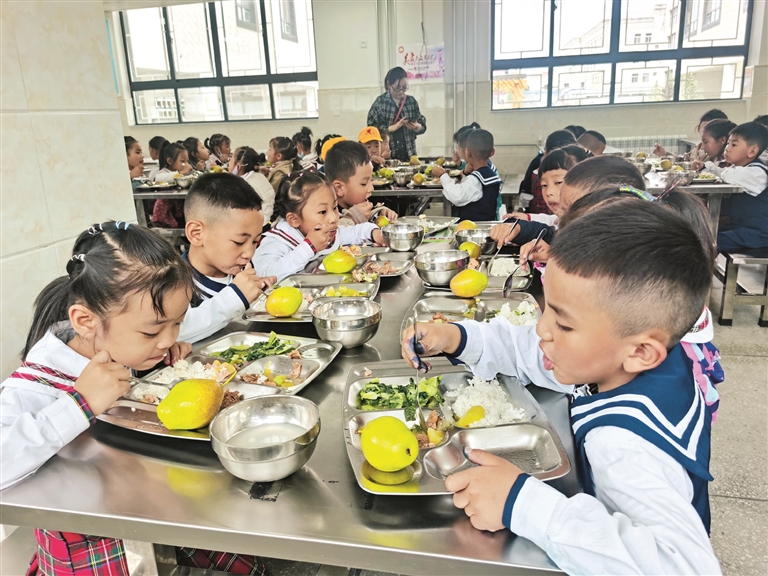 “學(xué)校沒(méi)有提供午餐前,中午特別忙。我是在路上趕,母親在家里忙,把小孩接回家吃飯,吃完后馬上又要趕回學(xué)校?,F(xiàn)在學(xué)校提供午餐,實(shí)在是太方便了?!崩_市第一小學(xué)四年級(jí)學(xué)生家長(zhǎng)央金說(shuō)道。