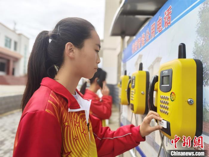 圖為臨潭一中學(xué)生王若玉刷電子?;战o家人打電話?!堟?攝