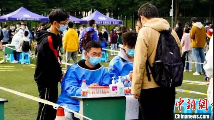 電子科大學(xué)生志愿者協(xié)助核酸檢測(cè)?!∷拇ㄊ〗逃龔d供圖